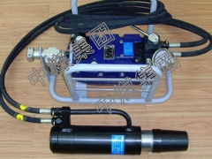 气动锚索张拉机具由张拉千斤顶、QYB-55型气动液压泵以及高压胶管等组成,构成一组煤矿巷道锚索预应力张拉安装的必备工具。张拉千斤顶内置工具锚,不但实现自动锚固和自动退锚,而且保证了操作安全,提高了工作效率。